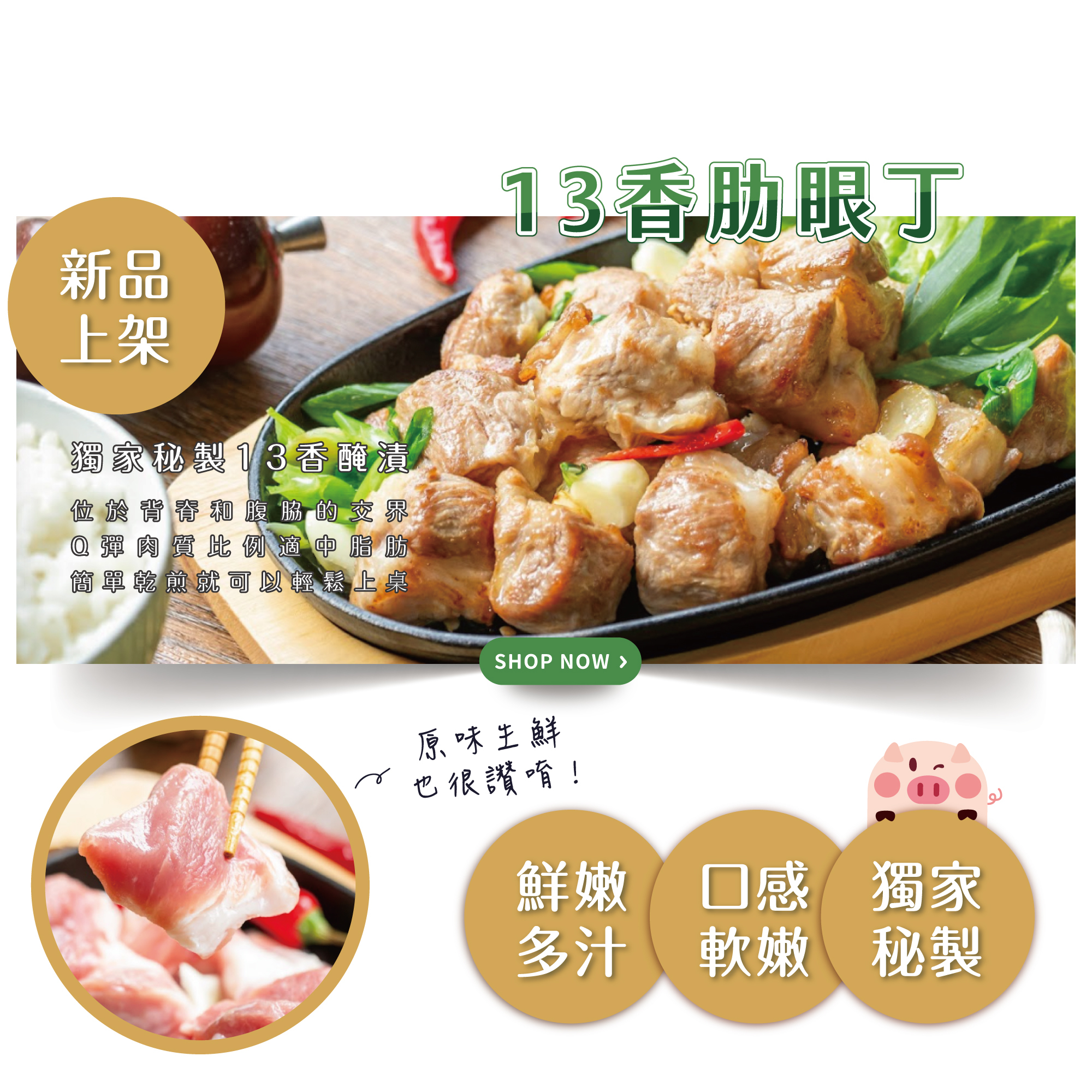台全牧場團隊精心研發出肉質鮮美、肥瘦均勻的健康「快樂豬」。
