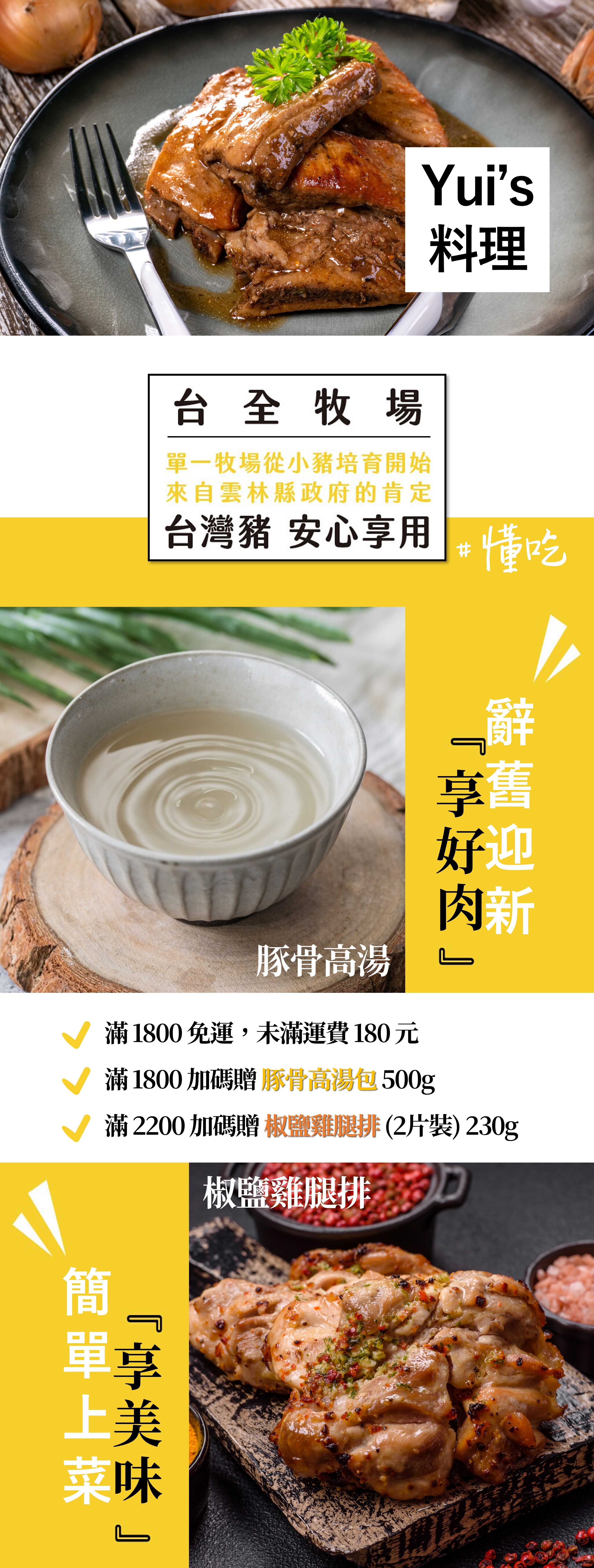 ►單筆滿NT$1800贈豚骨高湯乙包(500g/包)。