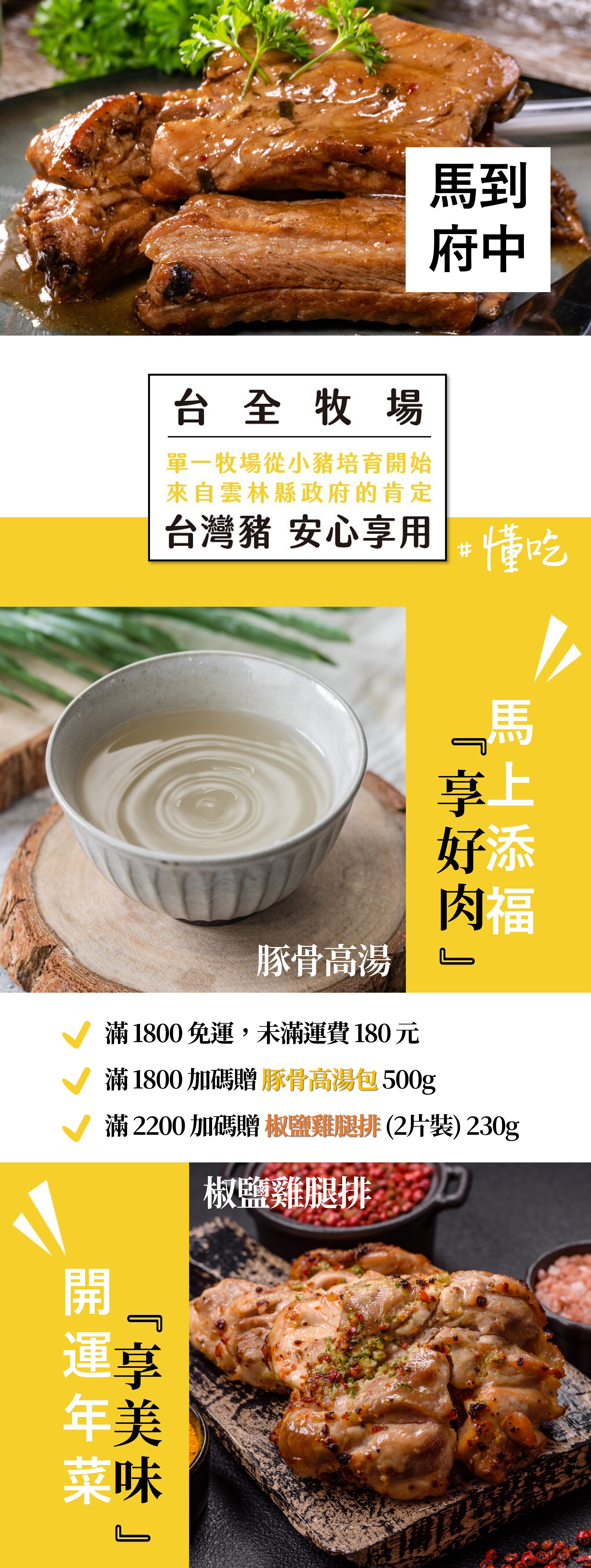 即日起🔥滿1800元贈豚骨高湯包500g🔥滿2200元贈椒鹽雞腿排(2片裝)230g🔥贈完為止