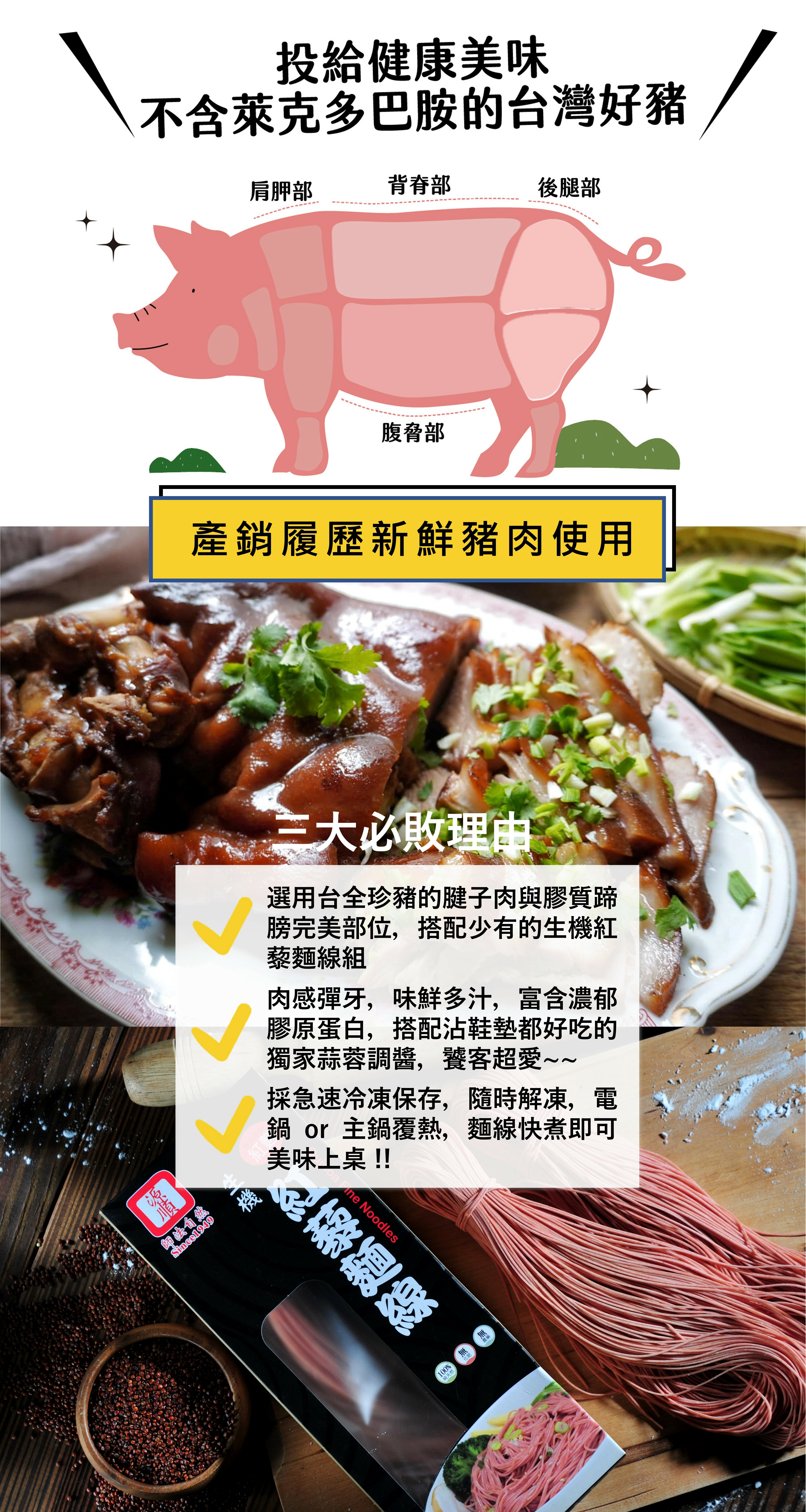 呷麵線添福壽,呷豬腳增勇健。去大骨萬巒豬腳搭配生機紅藜麵線,長輩們收到揪感心~簡單加熱即食,添福添壽也即時!